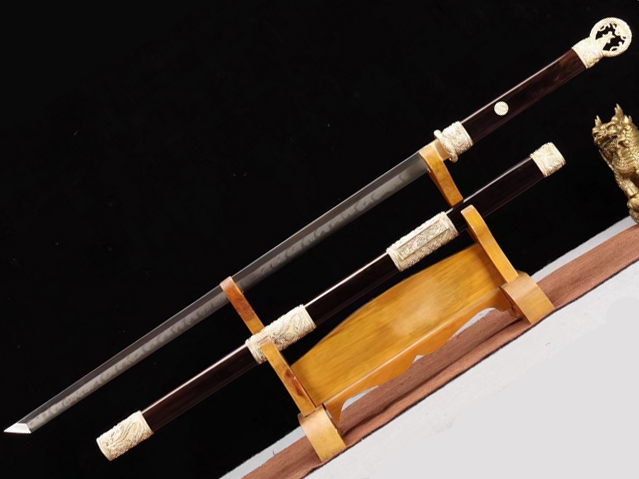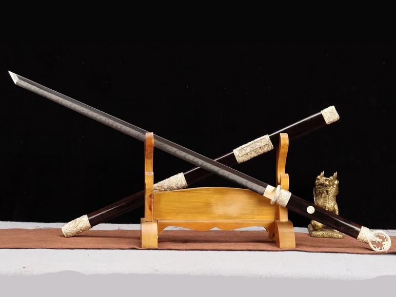 总长:103cm刃长:72cm柄长:27cm刃宽:3.2cm刃厚:0.7cm硬度:60HRC以上刃材:自炼钢鞘材:紫光檀木装具:铜装工艺:覆土烧刃—回火锻打程度:十五道纯手工研磨+上研赠品:锦盒-刀油-收藏证书-刀架重量:1490g