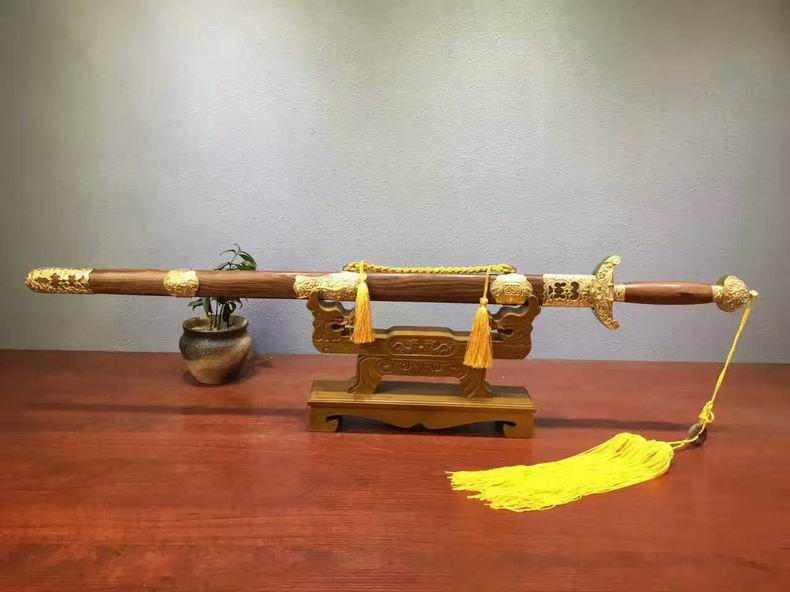 商品属性 [总长] 108cm [刃长] 75cm [柄长] 25cm [刃宽] 3.7cm [刃厚] 0.8cm [硬度] 59HRC [刃材] 弹簧钢 [鞘材] 酸枝木 [柄材] 酸枝木 [装具] 纯铜 [工艺] 淬火(盐水)—回火 [锻打程度] 十三道纯手工研磨 [赠品] 锦盒-刀油-收藏证书-刀架
