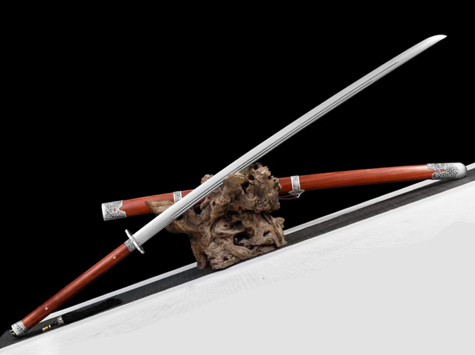 商品参数 总长:145cm 刃长:100cm 刃宽:3.8cm 刃厚:0.75cm 硬度:58HRC 刃材:锰钢 鞘材:红木 装具:镀银 工艺:淬火(盐水)—回火 锻打程度:十三道纯手工研磨 赠品:锦盒-刀油-收藏证书-刀架 重量:2.3kg