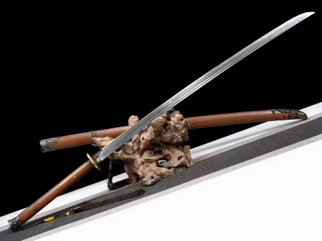 商品参数 总长:146cm 刃长:100cm 刃宽:3.7cm 硬度:60HRC 刃材:百炼钢 鞘材:重蚁木 装具:纯铜 工艺:淬火(油)—回火 锻打程度:十三道纯手工研磨 赠品:锦盒-刀油-收藏证书-刀架 重量:2.8kg