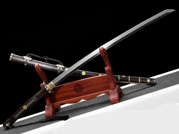 商品属性 [总长] 115cm [刃长] 72cm [柄长] 30cm [刃宽] 3.2cm [刃厚] 0.7cm [硬度] 60HRC以上 [刃材] 自炼钢 [鞘材] 实木皮套 [柄材] 铜装 [装具] 铜鎏金鎏银 [工艺] 覆土烧刃—回火 [锻打程度] 十五道纯手工研磨+上研 [赠品] 锦盒-刀油-收藏证书-刀架