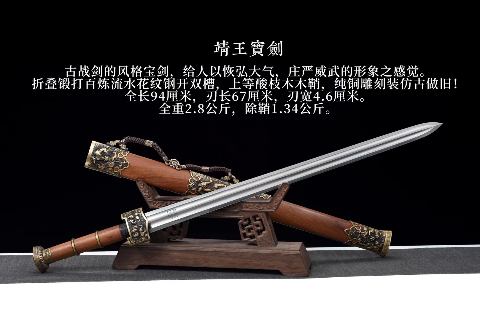 商品参数 硬度:60HRC 刃材:百炼钢 鞘材:酸枝木 柄材:酸枝木 装具:铜装 工艺:淬火(油)—回火 锻打程度:十三道纯手工研磨 赠品:锦盒-刀油-收藏证书-刀架