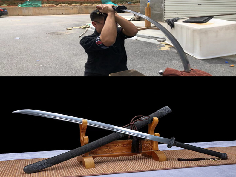 商品属性 [总长] 107cm [刃长] 72cm [柄长] 28cm [刃宽] 3.6cm [刃厚] 0.65cm [硬度] 58HRC [刃材] 弹簧钢 [鞘材] 实木皮套 [装具] 合金 [工艺] 淬火(油)—回火 [锻打程度] 十二道纯手工研磨 [赠品] 锦盒-刀油-收藏证书-刀架 [重量] 1.1kg