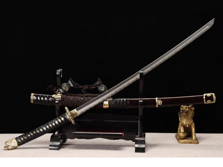商品属性 [总长] 105cm [刃长] 73.4cm [刃宽] 3.2cm [刃厚] 0.75cm [硬度] 60HRC以上 [刃材] 百炼钢 [鞘材] 紫光檀木 [装具] 铜装 [工艺] 覆土烧刃—回火 [锻打程度] 十五道纯手工研磨+上研 [赠品] 锦盒-刀油-收藏证书-刀架 [重量] 2.1kg