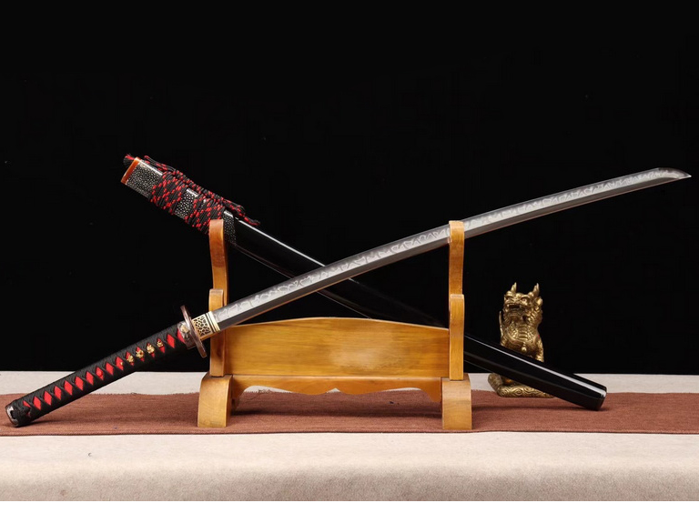 商品属性 [总长] 102cm [刃长] 73cm [柄长] 26cm [刃宽] 3.2cm [刃厚] 0.7cm [硬度] 60HRC以上 [刃材] 自炼钢 [鞘材] 鱼皮镶牛角 [柄材] 珍珠鱼皮 [装具] 铜鎏金鎏银 [工艺] 覆土烧刃—回火 [锻打程度] 十四道纯手工研磨 [赠品] 锦盒-刀油-收藏证书-刀架 [重量] 1.6kg