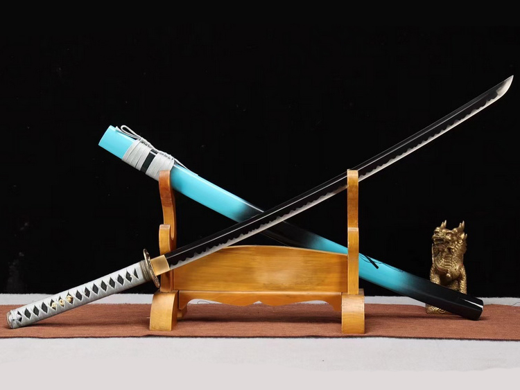 总长:100cm刃长:72cm柄长:27cm刃宽:3.2cm刃厚:0.7cm硬度:57HRC刃材:锰钢刃表面:烤黑处理鞘材:朴木柄材:朴木装具:合金工艺:淬火(盐水)—回火锻打程度:十二道纯手工研磨赠品:锦盒-刀油-收藏证书-刀架