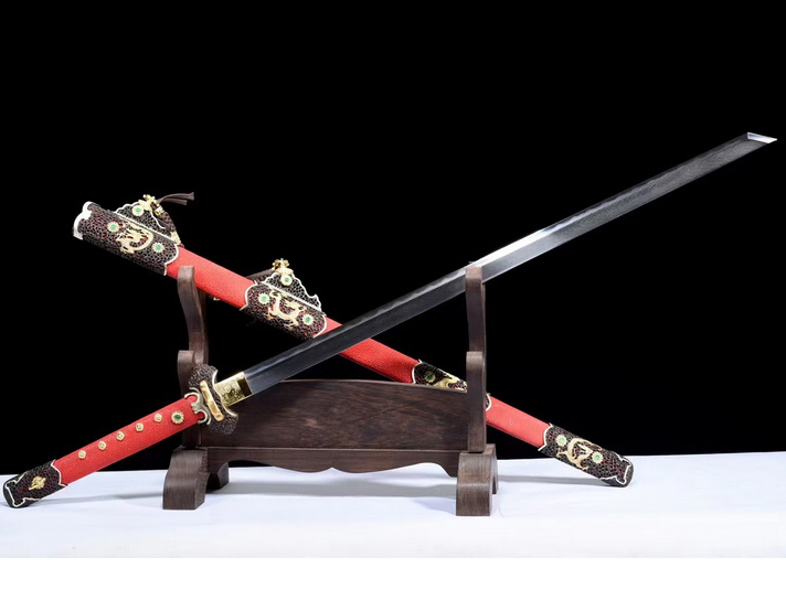 总长:105cm刃长:72cm柄长:26cm刃宽:3.2cm刃厚:0.7cm硬度:60HRC以上刃材:百炼钢鞘材:高档珍珠鱼皮装具:纯手雕鎏真金银工艺:覆土烧刃—回火锻打程度:十五道纯手工研磨+上研赠品:锦盒-刀油-收藏证书-刀架重量:全2kg,净1.2kg