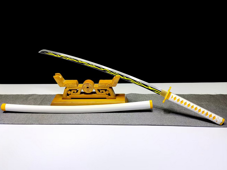 商品参数 总长:103cm 刃长:72cm 刃宽:3.2cm 刃厚:0.7cm 刃材:1095钢 鞘材:朴木 装具:合金 工艺:淬火(油)—回火 锻打程度:十二道纯手工研磨 赠品:锦盒-刀油-收藏证书-刀架 重量:1.3kg