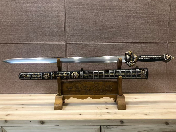 商品属性 [总长] 105cm [刃长] 60cm [刃宽] 4.5cm [刃厚] 0.8cm [硬度] 60HRC以上 [刃材] 自炼钢 [刃表面] 精磨上研 [鞘材] 高档珍珠鱼皮 [柄材] 珍珠鱼皮 [装具] 铜鎏金鎏银 [工艺] 淬火(油)—回火 [锻打程度] 十五道纯手工研磨+上研 [赠品] 高档木制锦盒-刀油-收藏证书-刀架 [重量] 3.5kg