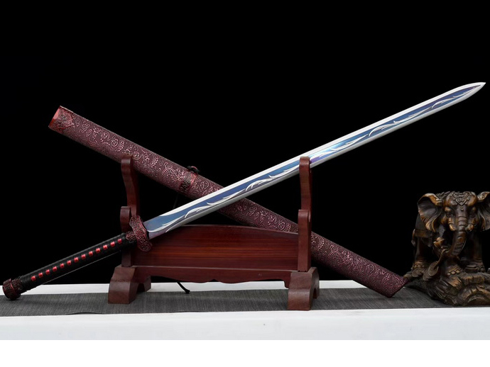 商品参数 总长:107cm 刃长:67cm 柄长:32cm 刃宽:3.6cm 刃厚:0.6cm 硬度:58HRC 刃材:锰钢 装具:合金 工艺:淬火(油)—回火 锻打程度:十二道纯手工研磨 赠品:锦盒-刀油-收藏证书-刀架 重量:1.6kg