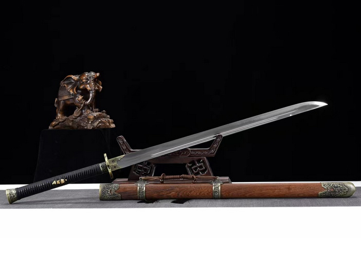 商品参数 总长:108cm 刃长:73cm 柄长:31cm 刃宽:3.6cm 刃厚:0.6cm 硬度:58HRC 刃材:锰钢 鞘材:花梨木 装具:铜锌合金 工艺:淬火(油)—回火 锻打程度:十三道纯手工研磨 赠品:锦盒-刀油-收藏证书-刀架