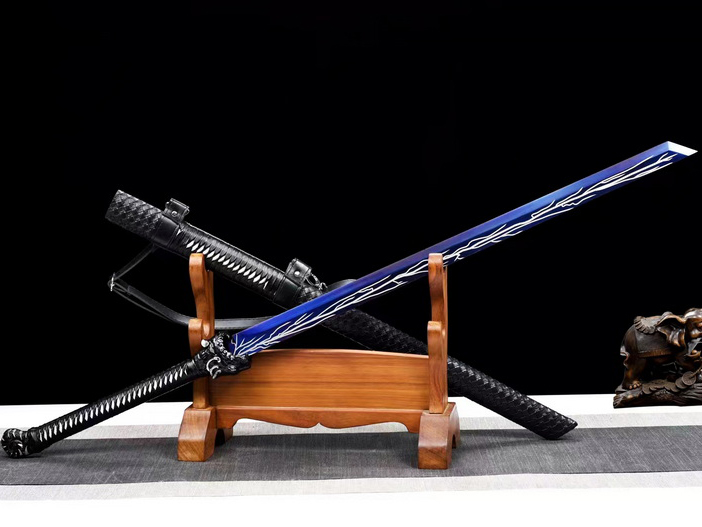 商品参数 硬度:58HRC 刃材:锰钢 鞘材:皮革包实木 装具:合金 工艺:淬火(油)—回火 锻打程度:十二道纯手工研磨 赠品:锦盒-刀油-收藏证书-刀架