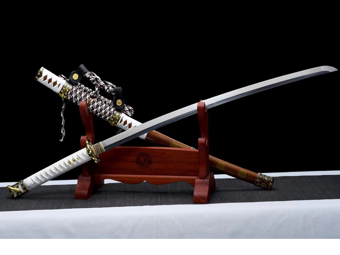 商品属性 [总长] 104cm [刃长] 71cm [柄长] 27cm [刃宽] 3.2cm [刃厚] 0.7cm [硬度] 59HRC [刃材] 弹簧钢 [鞘材] 朴木 [装具] 合金 [工艺] 淬火(水)—回火 [锻打程度] 十三道纯手工研磨 [赠品] 锦盒-刀油-收藏证书-刀架