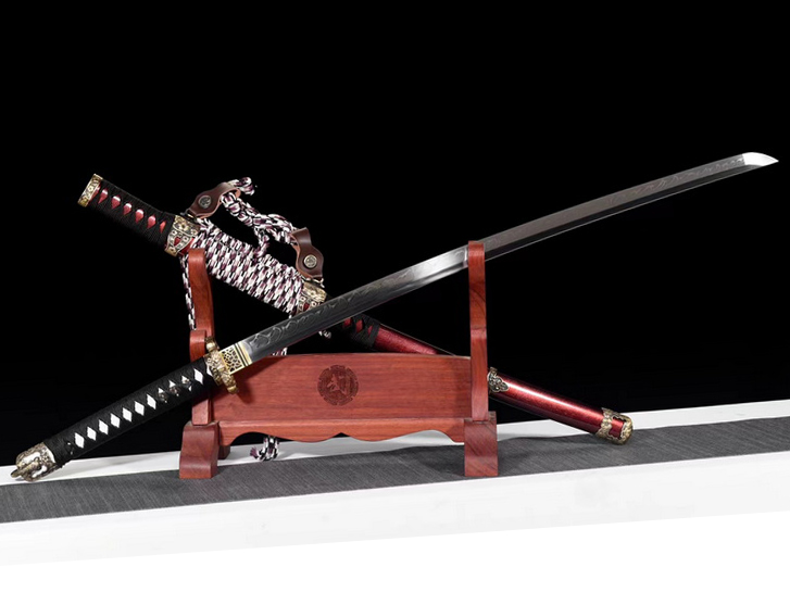 商品属性 [总长] 104cm [刃长] 71cm [柄长] 27cm [刃宽] 3.2cm [刃厚] 0.7cm [硬度] 60HRC以上 [刃材] 高碳钢 [鞘材] 朴木 [装具] 纯铜 [工艺] 覆土烧刃—回火 [锻打程度] 十三道纯手工研磨 [赠品] 锦盒-刀油-收藏证书-刀架