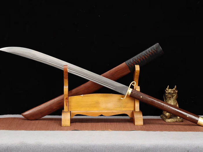 总长:110cm刃长:65cm柄长:38cm刃宽:5cm刃厚:0.5cm硬度:58HRC刃材:锰钢鞘材:花梨木柄材:花梨木装具:纯铜工艺:淬火(盐水)—回火锻打程度:十二道纯手工研磨赠品:锦盒-刀油-收藏证书-刀架重量:1.8kg