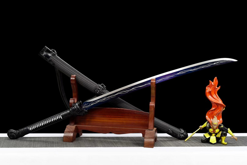 商品参数 总长:110cm 刃长:72cm 柄长:30cm 刃宽:3.7cm 刃厚:0.5cm 硬度:58HRC 刃材:锰钢 鞘材:实木包皮革 装具:合金 赠品:锦盒-刀油-收藏证书-刀架