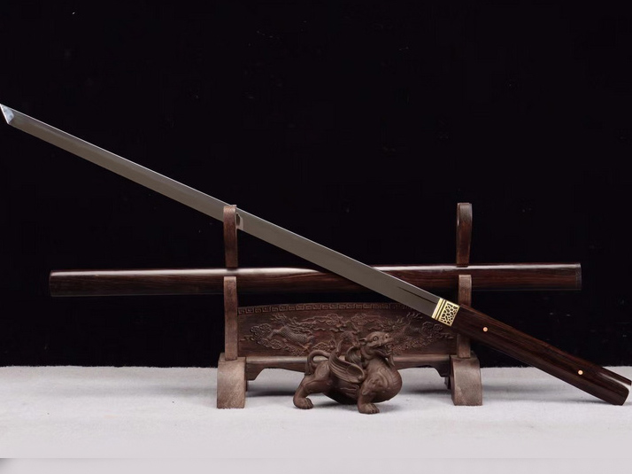 商品属性 [总长] 103cm [刃长] 72cm [柄长] 27cm [刃宽] 3.2cm [刃厚] 0.7cm [硬度] 60HRC [刃材] 自炼钢 [鞘材] 黑檀木 [工艺] 淬火(盐水)—回火 [锻打程度] 十四道纯手工研磨 [赠品] 锦盒-刀油-收藏证书-刀架 [重量] 全重1490g,净重1040g