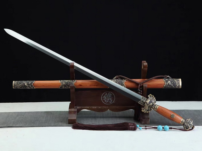 商品属性 [总长] 102cm [刃长] 75cm [柄长] 19cm [刃宽] 3.5cm [刃厚] 0.7cm [硬度] 60HRC [刃材] 百炼钢 [鞘材] 酸枝木 [装具] 纯铜 [锻打程度] 十四道纯手工研磨 [赠品] 锦盒-刀油-收藏证书-刀架