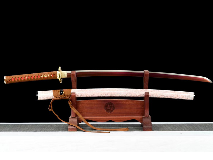 商品参数 高锰钢锻打弯曲不变形,刀身古法烤紫工艺处理,刃口全手工【直线推磨研白】处理硬度高达砍铁不伤刃,带鞘全长103厘米,刃长71厘米,柄长26厘米,刃宽3.2厘米,锌合金刀镡,实木漆鞘搭配精美下绪