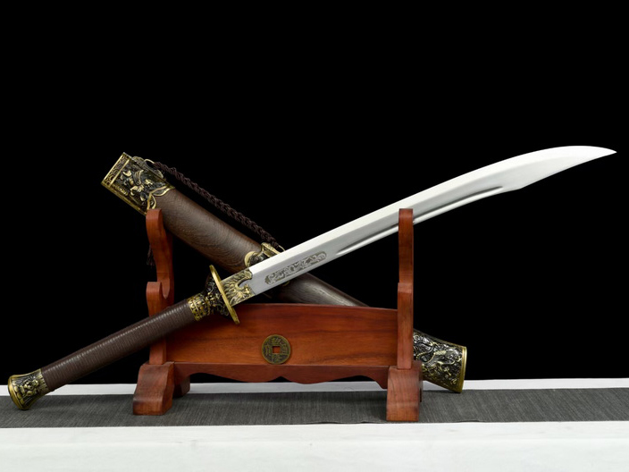 商品属性 [总长] 93cm [刃长] 57cm [柄长] 29cm [刃宽] 4.4cm [刃厚] 0.5cm [硬度] 58HRC [刃材] 锰钢 [鞘材] 花梨木 [装具] 合金 [工艺] 淬火(水)—回火 [锻打程度] 十二道纯手工研磨 [赠品] 锦盒-刀油-收藏证书-刀架 [重量] 2.05kg 去鞘1.2kg
