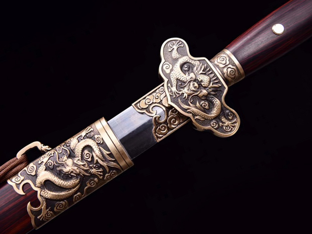 商品参数 刀装:黄铜复古工艺 鞘材:红檀木 钢材:锋钢手工锻打,高温淬火,手工研磨 全长106cm 刃长75.5cm 柄长25.5cm 刃宽3.5cm; 除鞘重约1187.5g全重、约1988.5g