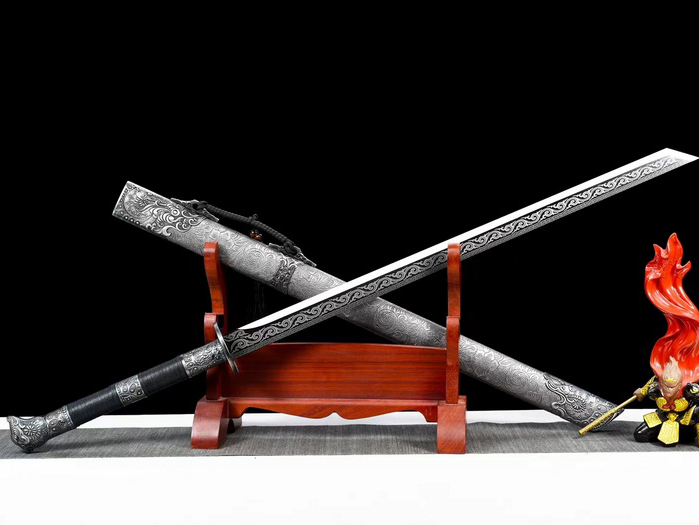 商品属性 [总长] 111cm [刃长] 72cm [柄长] 31cm [刃宽] 3.8cm [刃厚] 0.5cm [硬度] 58HRC [刃材] 锰钢 [鞘材] 实木包皮革 [装具] 合金 [赠品] 锦盒-刀油-收藏证书-刀架 [重量] 2.0kg