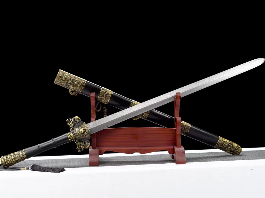 商品属性 [总长] 120cm [刃长] 79cm [柄长] 34cm [刃宽] 4.5cm [刃厚] 0.65cm [硬度] 59HRC [刃材] 花纹钢 [鞘材] 乌木 [装具] 铜锌合金 [工艺] 淬火(盐水)—回火 [锻打程度] 十三道纯手工研磨 [赠品] 锦盒-刀油-收藏证书-剑架 [重量] 3.1kg 去鞘1.9kg