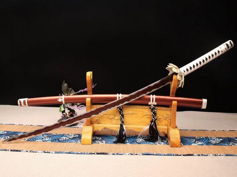 商品属性 [总长] 103cm [刃长] 70cm [柄长] 28cm [刃宽] 3.2cm [刃厚] 0.7cm [硬度] 59HRC [刃材] 火车弹簧钢 [鞘材] 原木油漆鞘 [装具] 镀银 [工艺] 淬火(盐水)—回火 [锻打程度] 十三道纯手工研磨 [赠品] 锦盒-刀油-收藏证书-剑架 [重量] 全重1.8kg,去鞘1.6kg