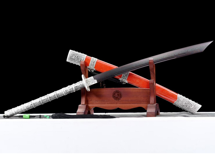 【装具】:全金属手柄设计、砂银豪华康熙套装搭配绿色珍珠鱼皮鞘,美观霸气,收藏首选,赠礼佳品!