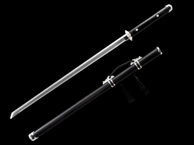商品参数 【刃材】:高锰钢 【全长】:103cm 【刃长】:72 cm 【柄长】:25 cm 【刃宽】:3.2cm 【刃厚】:0.5cm 【除鞘重】:09Kg 【总重约】:1.3Kg 【装具】:锌合金装 【鞘材】:乌木 【适合】收藏 防身 情侣配送 乔迁送礼 武术健身 精美摆设