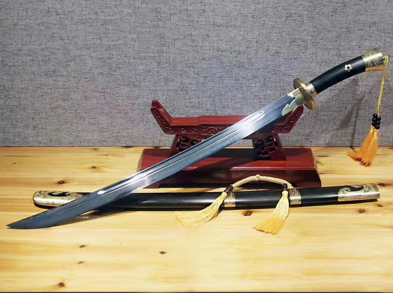 商品属性 [总长] 91cm [刃长] 73cm [柄长] 18cm [刃宽] 3.7cm [刃厚] 0.7cm [硬度] 60HRC以上 [刃材] 高碳钢 [鞘材] 黑檀木 [柄材] 黑檀木 [装具] 包铜 [工艺] 淬火(油)—回火 [锻打程度] 十三道纯手工研磨 [赠品] 锦盒-刀油-收藏证书-刀架
