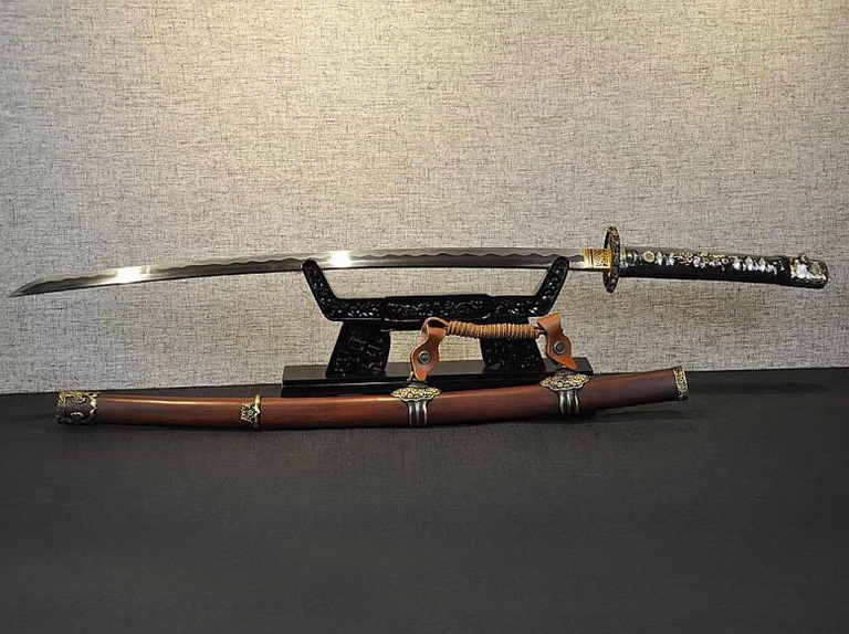 商品属性 [总长] 102cm [刃长] 72cm [柄长] 27cm [刃宽] 3.2cm [刃厚] 0.7cm [硬度] 60HRC以上 [刃材] 百炼钢 [刃表面] 精磨上研 [鞘材] 重蚁木 [装具] 纯铜 [工艺] 覆土烧刃—回火 [锻打程度] 十四道纯手工研磨 [赠品] 锦盒-刀油-收藏证书-刀架