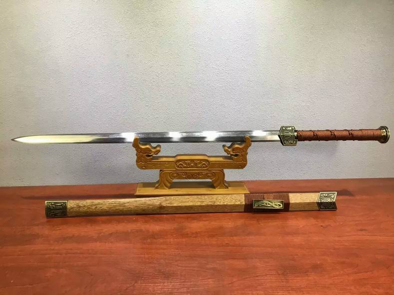 商品属性 [总长] 108cm [刃长] 75cm [柄长] 25cm [刃宽] 3.5cm [刃厚] 0.8cm [硬度] 58HRC [刃材] 花纹钢 [刃表面] 二级镜面 [鞘材] 花梨木 [装具] 铜锌合金 [工艺] 淬火(盐水)—回火 [锻打程度] 十三道纯手工研磨 [赠品] 锦盒-刀油-收藏证书-刀架