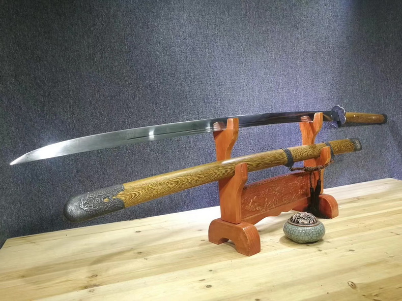 总长:145cm刃长:100cm柄长:43cm刃宽:3.8cm刃厚:0.8cm硬度:58HRC刃材:锰钢鞘材:花梨木柄材:花梨木装具:铜锌合金工艺:淬火(盐水)—回火锻打程度:十二道纯手工研磨赠品:锦盒-刀油-收藏证书-刀架![]()