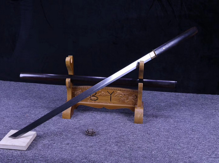 商品属性 [总长] 长款99cm,中款75cm [刃长] 长款72cm,中款52cm [柄长] 长款26cm,中款20cm [刃宽] 3.2cm [刃厚] 0.7cm [硬度] 60HRC以上 [刃材] 百炼钢 [鞘材] 黑檀木 [柄材] 黑檀木 [装具] 纯铜 [工艺] 覆土烧刃—回火 [锻打程度] 十三道纯手工研磨 [赠品] 锦盒-刀油-收藏证书-刀架
