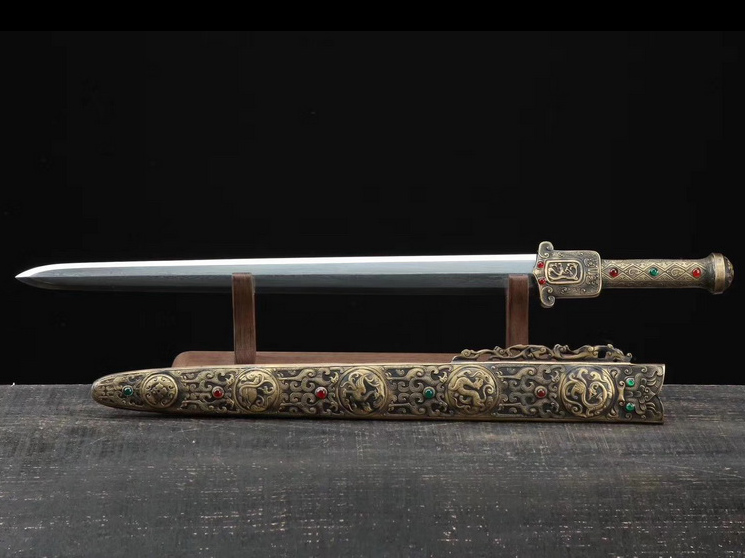 商品属性 [硬度] 60HRC以上 [刃材] 百炼钢 [鞘材] 铜装 [柄材] 铜装 [工艺] 淬火(盐水)—回火 [锻打程度] 十五道纯手工研磨+上研 [赠品] 锦盒-刀油-收藏证书-刀架-刀袋