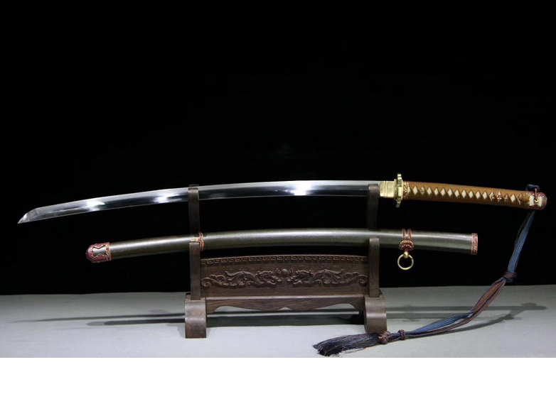 商品属性 [总长] 102cm [刃长] 71cm [柄长] 29cm [刃宽] 3.5cm [刃厚] 0.75cm [硬度] 60HRC以上 [刃材] 百炼钢 [鞘材] 铁装 [柄材] 珍珠鱼皮 [装具] 铜装 [工艺] 淬火(盐水)—回火 [锻打程度] 十六道纯手工研磨+上研 [赠品] 锦盒-刀油-收藏证书-刀架-刀袋
