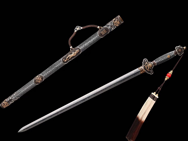 总长:106cm刃长:77cm柄长:19cm刃宽:3.5cm刃厚:0.75cm硬度:60HRC以上刃材:自炼钢刃表面:精磨上研柄材:珍珠鱼皮装具:鎏金鎏银工艺:覆土烧刃—回火锻打程度:十六道纯手工研磨+上研赠品:高档木制锦盒-刀油-收藏证书-刀架![]()