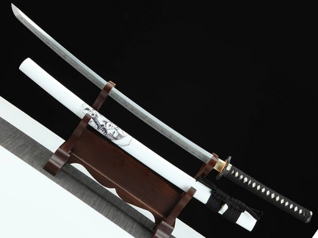 商品属性 [总长] 103cm [刃长] 71cm [柄长] 27cm [刃宽] 3.2cm [刃厚] 0.7cm [硬度] 60HRC以上 [刃材] 自炼钢 [鞘材] 朴木 [柄材] 珍珠鱼皮 [装具] 铜鎏金鎏银 [工艺] 覆土烧刃—回火 [锻打程度] 十四道纯手工研磨 [赠品] 锦盒-刀油-收藏证书-刀架