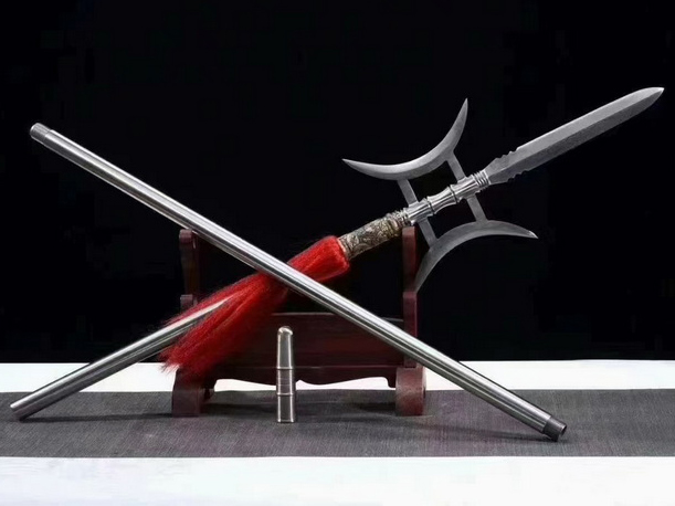 商品参数 总长:220cm 刃长:32cm 刃宽:4.2cm 硬度:60HRC 刃材:百炼钢 鞘材:不锈钢 锻打程度:十三道纯手工研磨 赠品:锦盒-刀油-收藏证书-刀架 重量:6kg