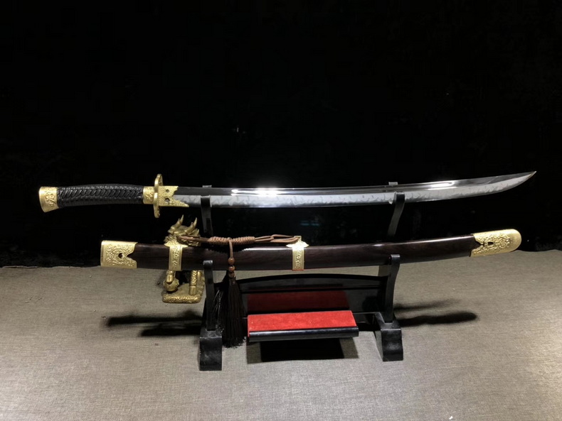 商品属性 [总长] 93cm [刃长] 73cm [柄长] 18cm [刃宽] 3.6cm [刃厚] 0.75cm [硬度] 60HRC以上 [刃材] 自炼钢 [刃表面] 一级精磨 [鞘材] 黑檀木 [柄材] 黑檀木 [装具] 铜装 [工艺] 覆土烧刃—回火 [锻打程度] 十五道纯手工研磨+上研 [赠品] 锦盒-刀油-收藏证书-刀架 [重量] 1.3kg