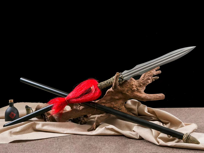 商品属性 [总长] 212cm [刃长] 40cm [刃宽] 5.7cm [硬度] 60HRC [刃材] 百炼钢 [柄材] 铁装 [装具] 纯铜 [工艺] 淬火(油)—回火 [锻打程度] 十三道纯手工研磨 [赠品] 锦盒-刀油-收藏证书-刀架 [重量] 3.2kg