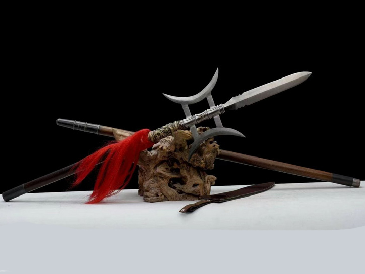 商品参数 总长:220cm 刃长:32cm 刃宽:4.2cm 硬度:60HRC以上 刃材:百炼钢 柄材:不锈钢 装具:铜装 工艺:淬火(油)—回火 锻打程度:十三道纯手工研磨 赠品:锦盒-刀油-收藏证书-刀架 重量:5kg