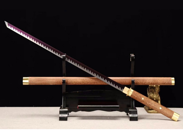 商品属性 [总长] 101cm [刃长] 72cm [柄长] 27cm [刃宽] 3.2cm [刃厚] 0.7cm [硬度] 59HRC [刃材] 弹簧钢 [鞘材] 花梨木 [装具] 包铜 [工艺] 淬火(油)—回火 [锻打程度] 十三道纯手工研磨 [赠品] 锦盒-刀油-收藏证书-刀架 [重量] 1.49kg
