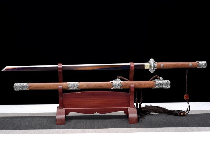 商品属性 [总长] 105cm [刃长] 71cm [柄长] 26cm [刃宽] 3.2cm [刃厚] 0.7cm [硬度] 60HRC以上 [刃材] 自炼钢 [鞘材] 重蚁木 [装具] 不锈钢 [工艺] 淬火(油)—回火 [锻打程度] 十四道纯手工研磨 [赠品] 锦盒-刀油-收藏证书-刀架