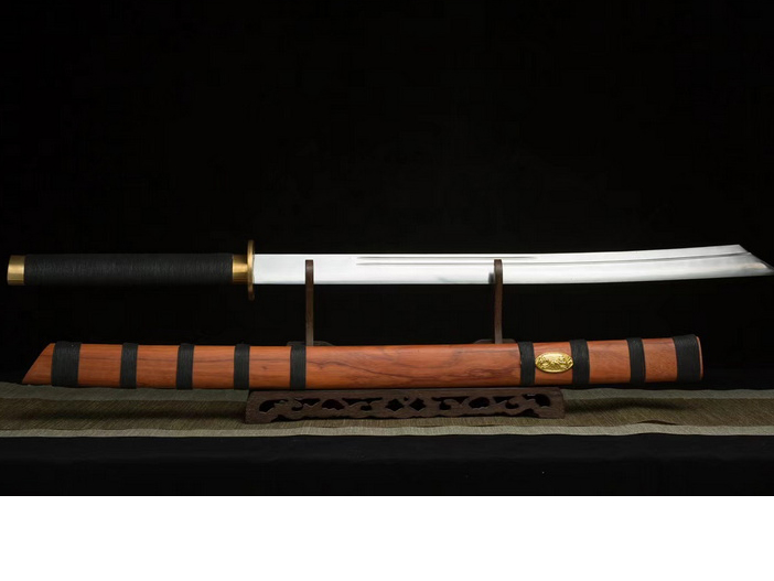 商品属性 [总长] 115cm [刃长] 70cm [柄长] 30cm [刃宽] 4.5cm [刃厚] 0.7cm [硬度] 59HRC [刃材] 弹簧钢 [鞘材] 红木 [装具] 纯铜 [工艺] 淬火(油)—回火 [锻打程度] 十二道纯手工研磨 [赠品] 锦盒-刀油-收藏证书-刀架 [重量] 2.1kg