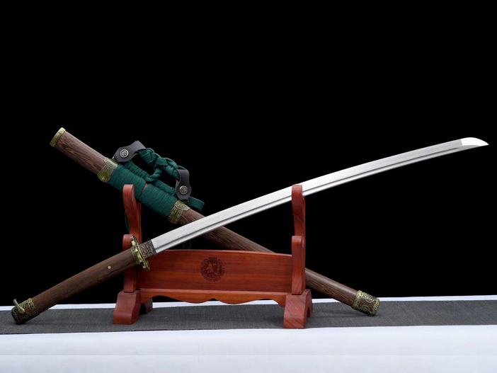 商品参数 总长:105cm 刃长:71cm 柄长:27cm 刃宽:3.2cm 刃厚:0.7cm 硬度:59HRC 刃材:花纹钢 鞘材:花梨木 柄材:花梨木 装具:合金 工艺:淬火(水)—回火 锻打程度:十三道纯手工研磨 赠品:锦盒-刀油-收藏证书-刀架