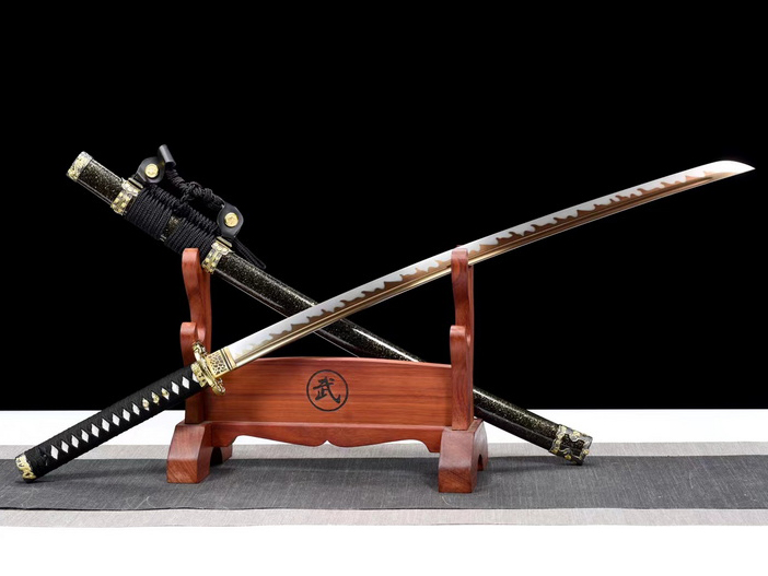 商品属性 [总长] 104cm [刃长] 71cm [柄长] 27cm [刃宽] 3.2cm [刃厚] 0.7cm [硬度] 58HRC [刃材] 锰钢 [鞘材] 朴木 [柄材] 朴木 [装具] 合金 [工艺] 淬火(水)—回火 [锻打程度] 十二道纯手工研磨 [赠品] 锦盒-刀油-收藏证书-刀架