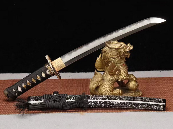 商品属性 [总长] 51cm [刃长] 33cm [刃宽] 3.2cm [刃厚] 0.7cm [硬度] 60HRC以上 [刃材] 自炼钢 [刃表面] 精磨上研 [鞘材] 高档珍珠鱼皮 [柄材] 珍珠鱼皮 [装具] 铜鎏金鎏银 [工艺] 覆土烧刃—回火 [锻打程度] 十四道纯手工研磨 [赠品] 锦盒-刀油-收藏证书-刀架 [重量] 650g