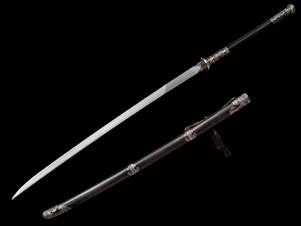 商品参数 总长:163cm 刃长:106cm 刃宽:4cm 硬度:60HRC以上 刃材:百炼钢 鞘材:黑檀木 装具:纯铜 工艺:强烧高温热处理-回火 锻打程度:十四道纯手工研磨 赠品:锦盒-刀油-收藏证书-刀架 重量:全重3.35kg,去鞘2.3kg